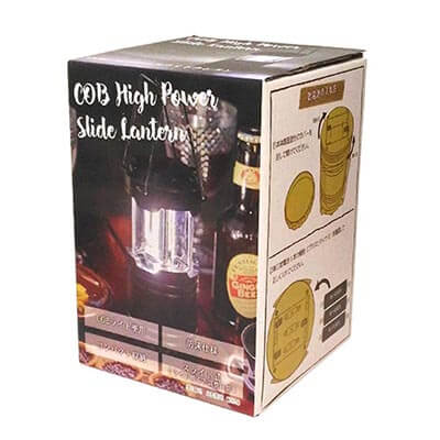 COBライトなので明るい!上に伸ばすと自動で点灯、収納すると自動で消灯するランタンです。